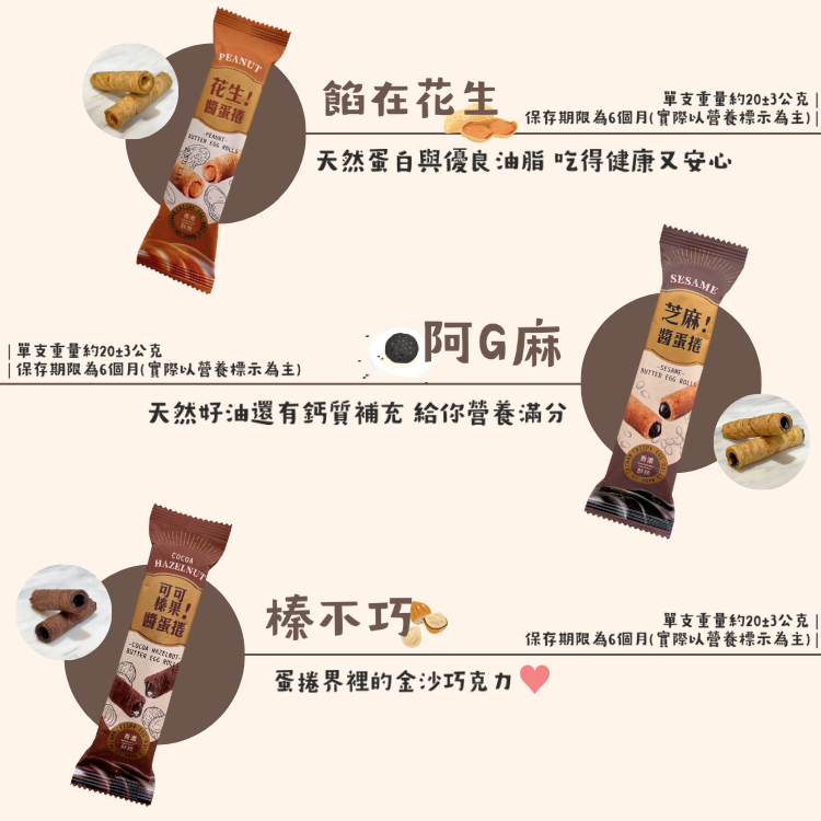 包餡蛋捲(阿G麻/餡在花生/榛不巧)—